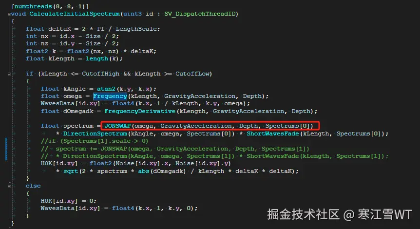 代码中关于这部分的实现,可以看 InitialSpectrum.compute中,红框部分的函数: