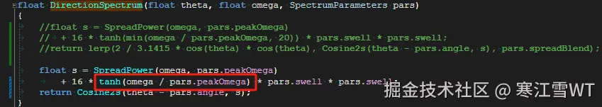 在上式中,\xi是由外部传入的一个极小值。k的计算,和上一篇文章介绍的Phillips的计算一致,这里\theta的计算与k有关。在代码中,还有一个插值的操作,为了便于理解,将代码简化如下,并把先关的函数都放在一起。其中,NormalisationFactor在论文中没有提及,也不太清楚这段代码的含义,大概就是在做归一化操作。