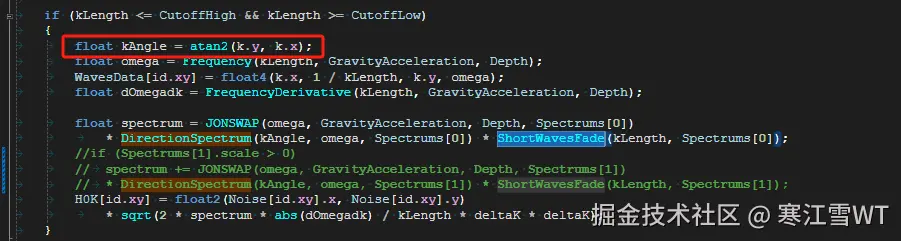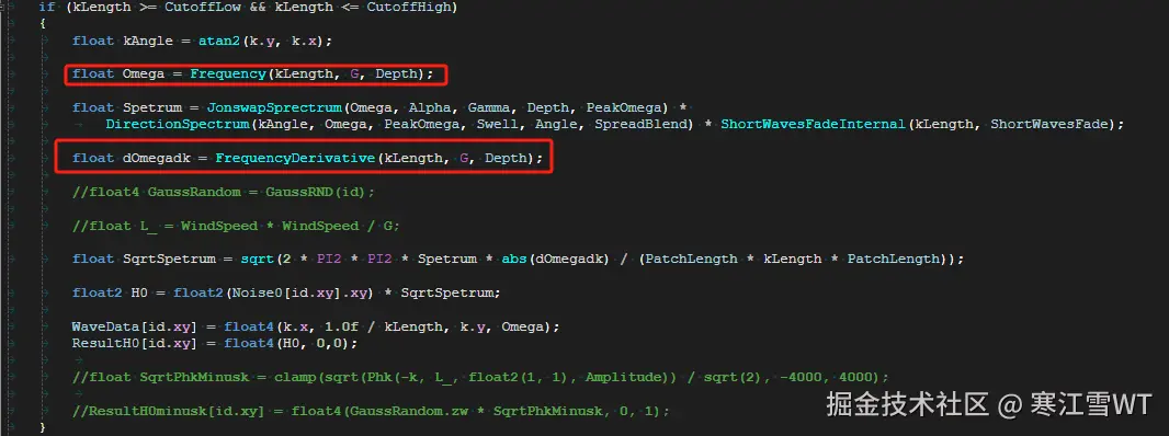 在开始执行初始化频谱的过程时,会首先计算\omega和d\omega_k。\omega在后续的公式中用得比较多,d\omega_k在最后一步使用。