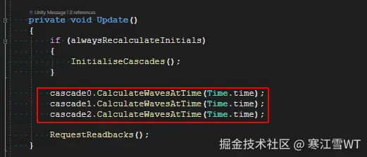 整个海浪模拟的过程定义在 WaveGenerator.cs中。