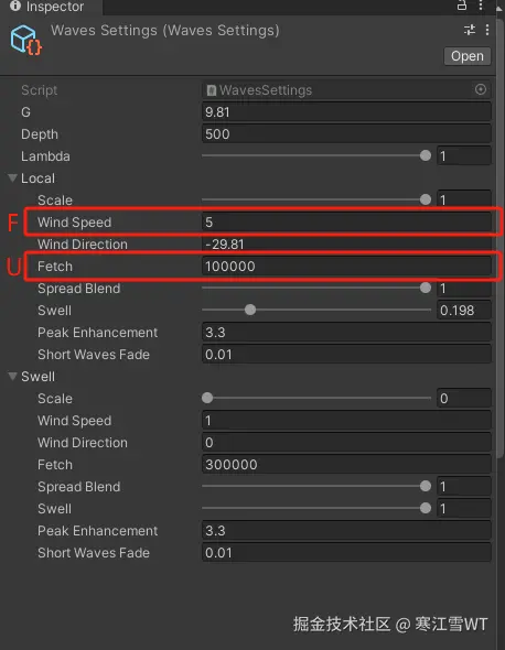 在Assets目录下,还有一个Waves Setting的配置,该配置的内容是用于生成初始频谱的参数。